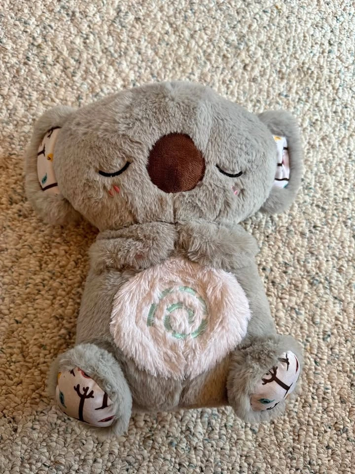 This Evora Koala Bear plush toy is 10 inches and "breathes." It has different sound effects you can choose to help calm and soothe. Let me know if you're interested!