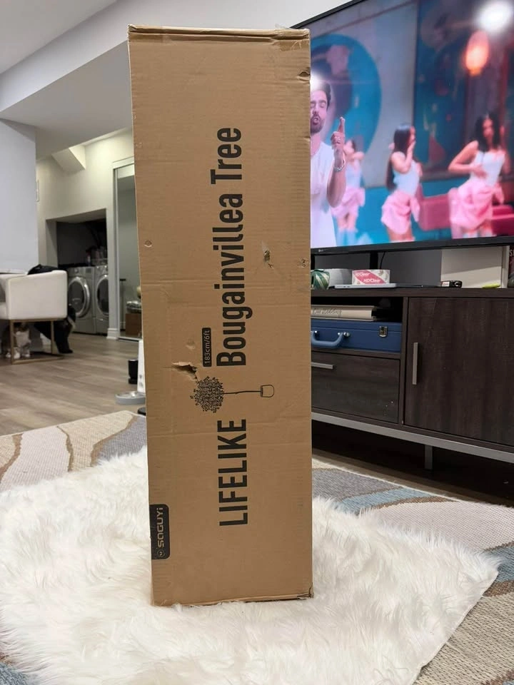 Brand new. This artificial pink bougainvillea plant is an ideal decorative piece for residential or event settings. The plant features vibrant pink and white flowers, accompanied by green leaves and brown stems, creating a visually appealing arrangement. Pick up from Renforth and Eglinton.