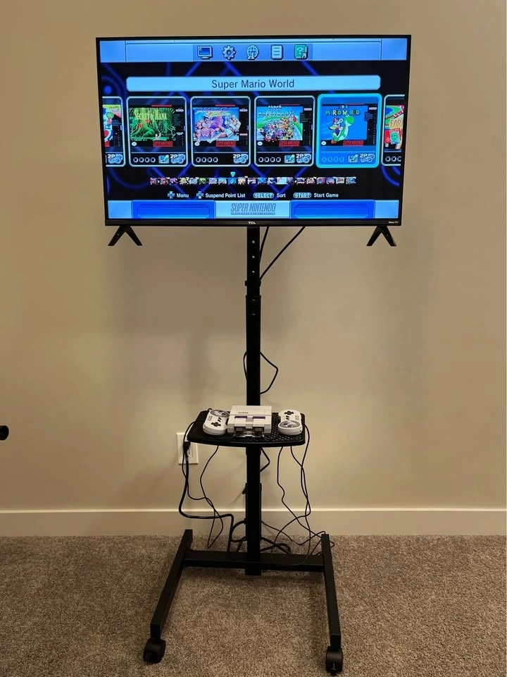 Step into the ’90s with our Super Nintendo Entertainment System (SNES) Classic Edition Package! Featuring a 32-inch Smart TV and mobile stand, this all-in-one setup is perfect for birthdays, team-building events, and family fun nights.