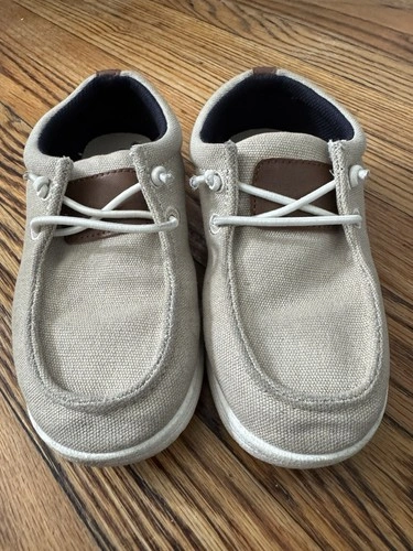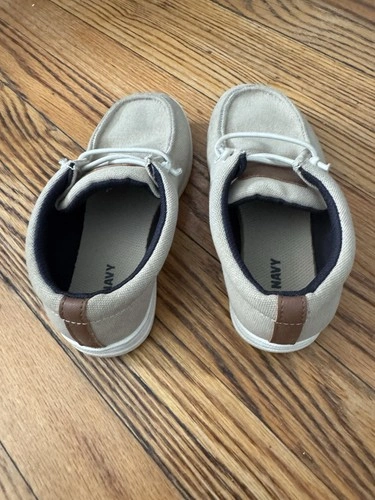 These were my son's dress shoes and were rarely used. They are Old Navy slip-on knit deck shoes in cream white, perfect for dressy occasions or adding a touch of sophistication to any outfit. Let me know if you're interested!