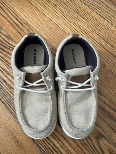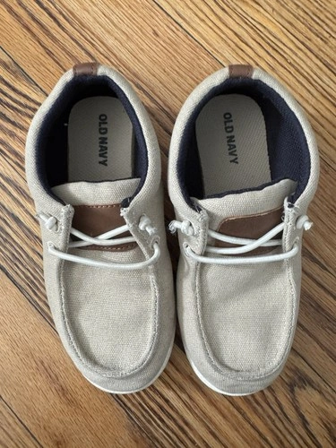 These were my son's dress shoes and were rarely used. They are Old Navy slip-on knit deck shoes in cream white, perfect for dressy occasions or adding a touch of sophistication to any outfit. Let me know if you're interested!