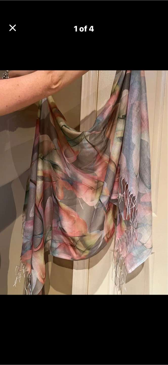 This TAMUYI scarf features a beautiful floral print in soft, muted colours. It has a lightweight feel and is finished with delicate fringe detailing. A lovely accessory for any outfit!