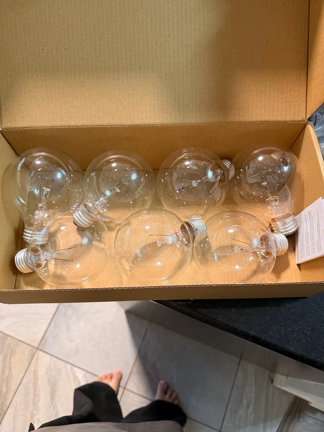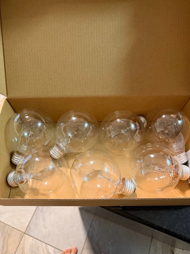 I have a set of eight clear light bulbs for sale. These bulbs are in excellent condition and ready to brighten up your space. Perfect for adding a touch of classic elegance to any room. They've been sitting in storage so they must go! If the ad is up, the item is available!
