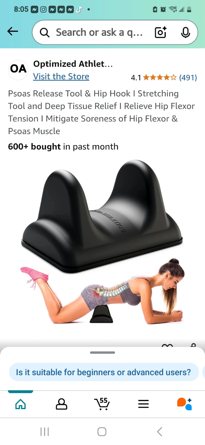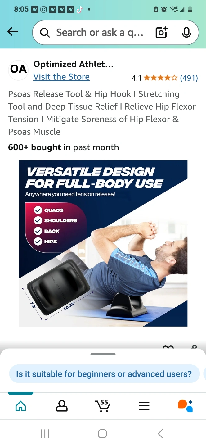 Stretching tool for hip flexor and psoas muscle. Relieves hip flexor tension and soreness. Versatile design for full body use. Great for quads, shoulders, back, and hips.