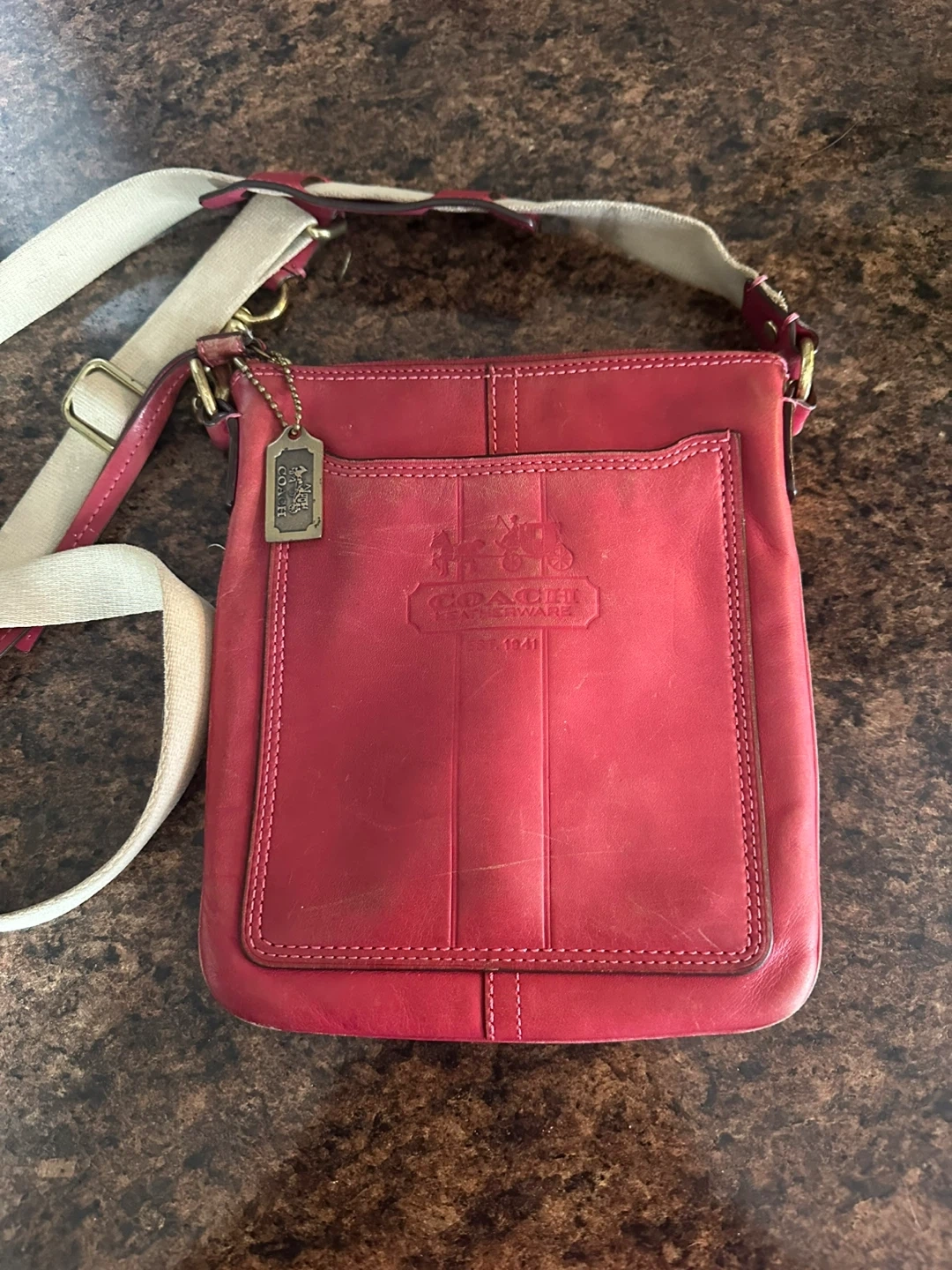 2008 vintage CoAch Leather Crossbody Bag in raspberry