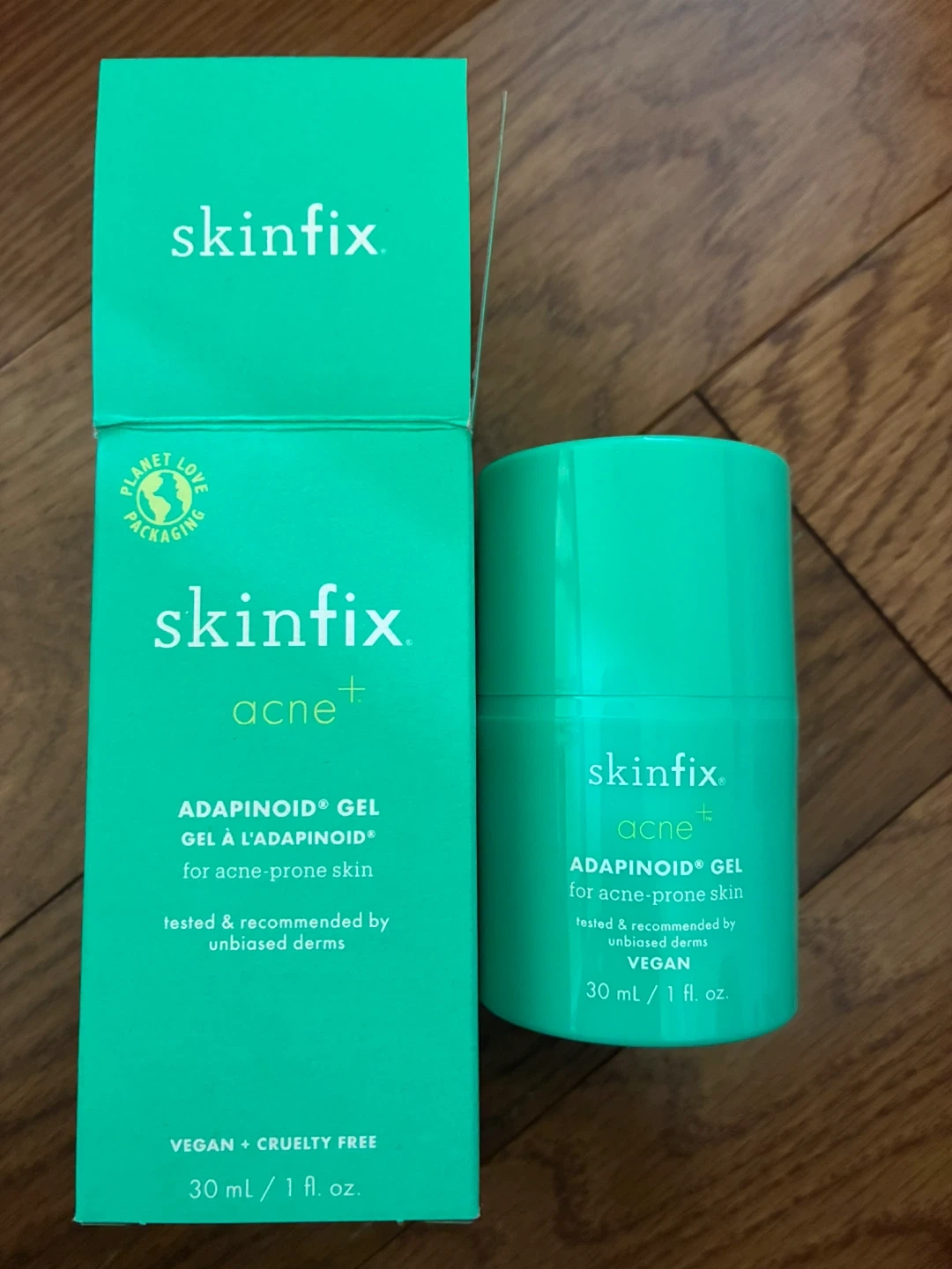 Skinfix Adapinoid Gel for acne-prone skin. It's a vegan and cruelty-free formula. 30 ml / 1 fl. oz. container.