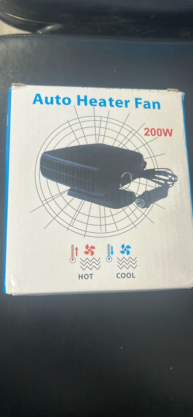 This is an auto heater fan. It operates on 12V or 24V systems. It's rated at 200W and can provide both hot and cool air. Useful for quickly warming or cooling a car interior.