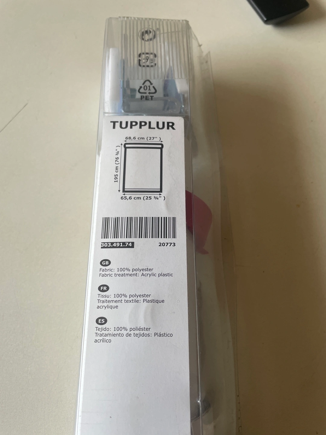 New IKEA TUPPLUR roller blind. Measures 65.6cm wide and 195cm long. 100% polyester fabric with acrylic plastic treatment. Packaged