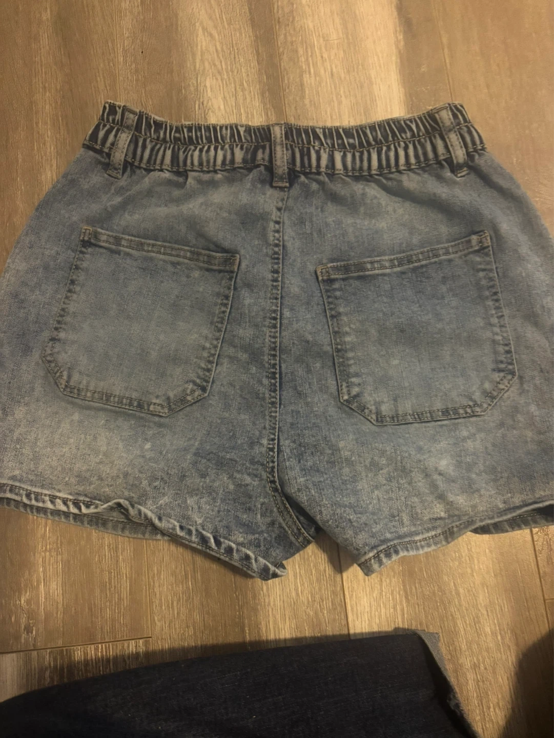 Denim cargo shorts from Grand Beach Club. Features an elastic waistband and two front pockets. Made of 68% cotton, 30% polyester, and 2% rayon. These shorts are great for casual wear. Size Women's 4