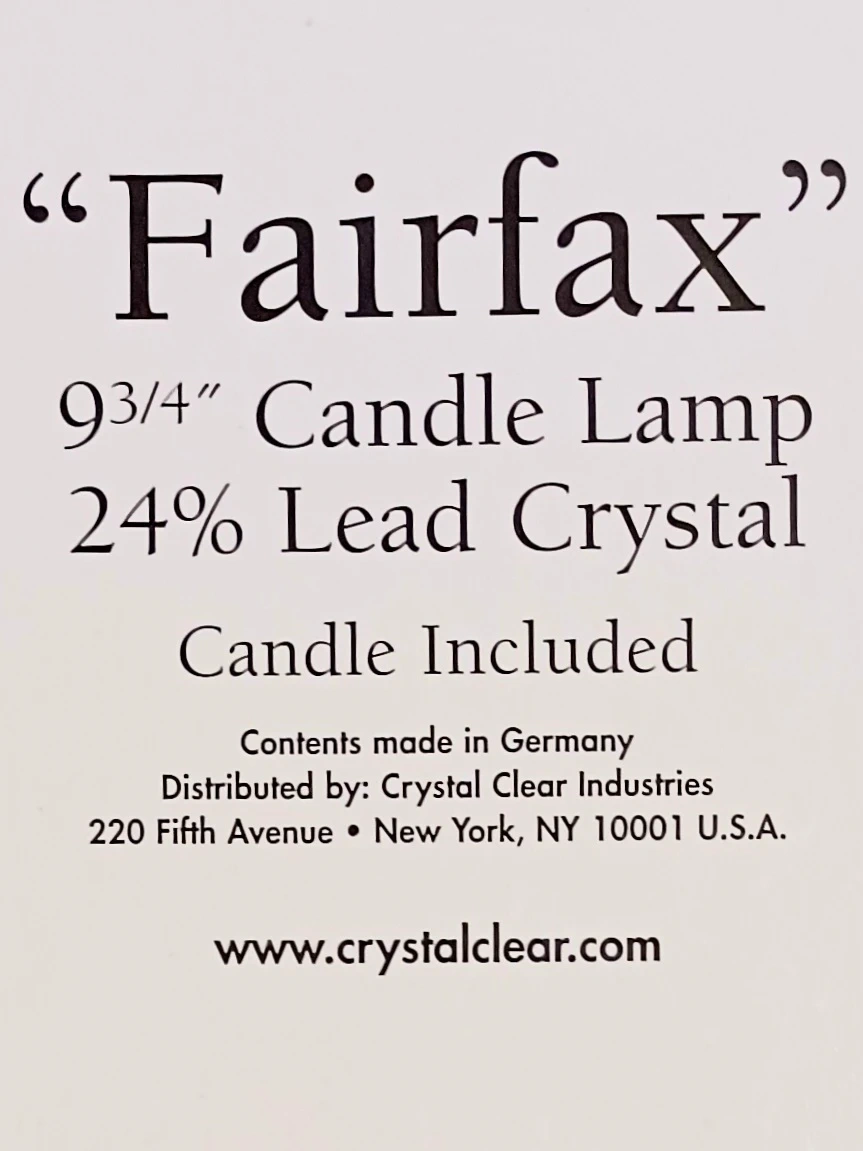 Fifth Avenue Crystal "Fairfax" 9 3/4" , Vintage Discontinued , Brand New Candle Lamp, crafted from 24% lead crystal and made in Germany.