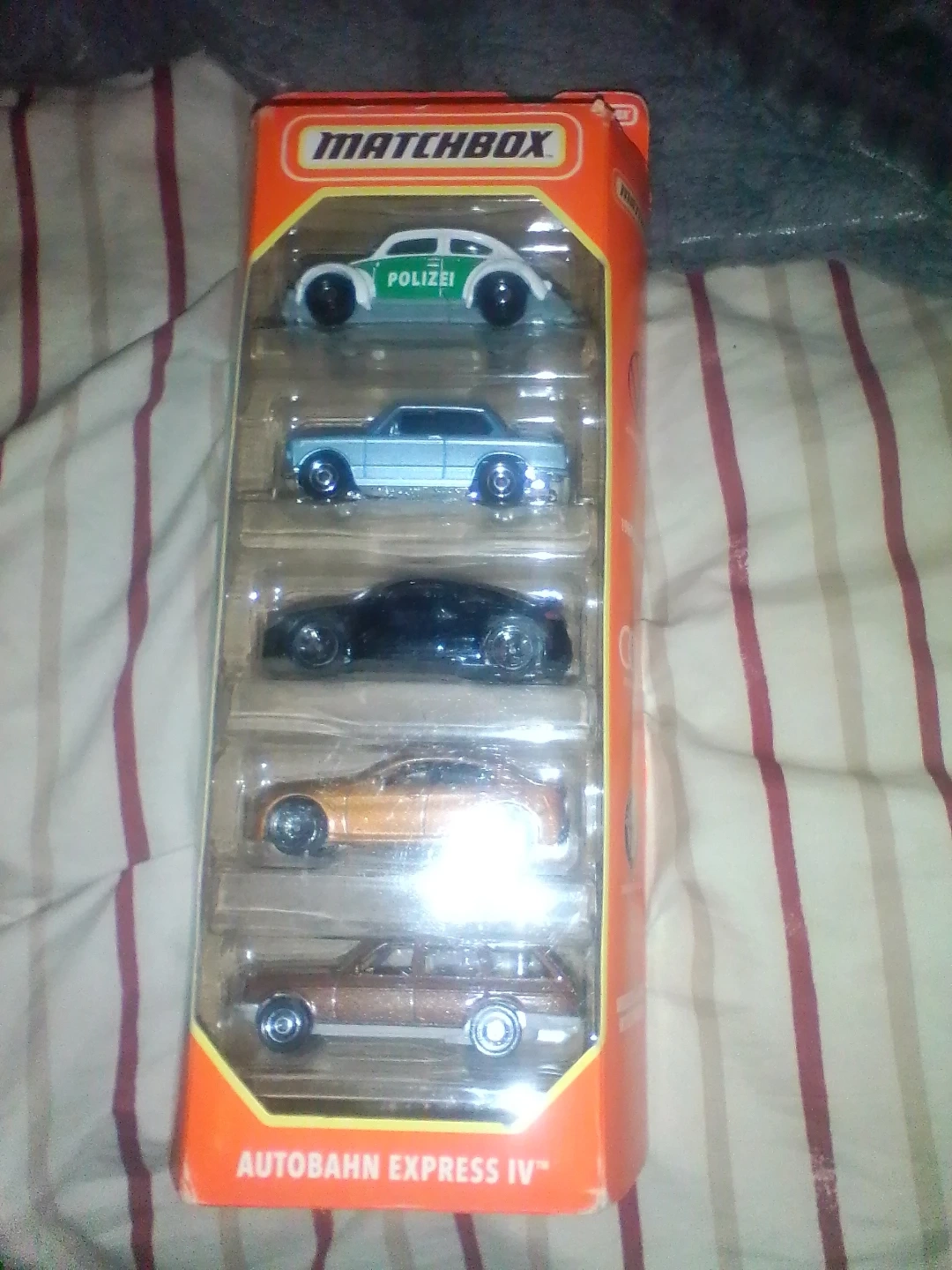 Selling a Matchbox Autobahn Express IV set of diecast cars. The set includes five different cars in various colors. Great for collectors or kids who love playing with toy cars!