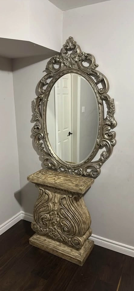 This is a set with a mirror and console. The mirror is from Bombay. I have 2 sets available, and each set is $200. The price is firm, with no reductions. If the ad is online, it is available. Please don't just ask if it's available. Located in Richmond Hill.