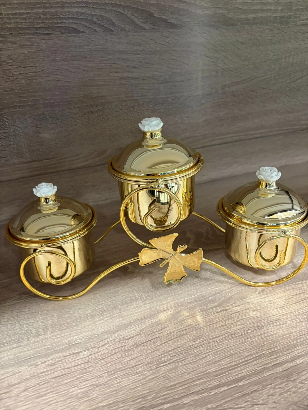 Gold Tiered Serving Tray with Decorative Ginkgo Leaves