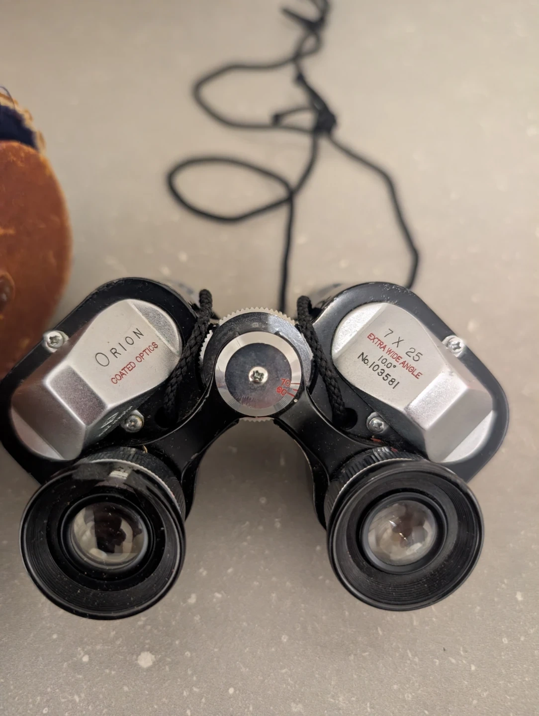 Buy & SellOrion 7x25 Extra Wide Angle Binoculars VintageOrion 7x25 Extra Wide Angle Binoculars Vintage$40Orion 7x25 binoculars with coated optics. Extra wide angle viewing. Includes original leather case.ConditionGoodWHERE TO MEETshoppersView MapSELLERJayVaughan15016 reviews0 chats·1 favorites·11 viewsSEND CHAT TO SELLERHi Jay! I’m interested in your listing.Hi Jay! I’m interested in your listing.Get the Karrot app to chatSign In to chat