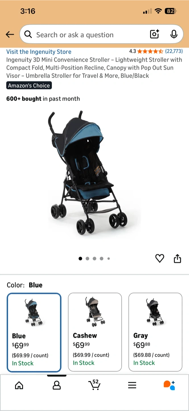 This Ingenuity stroller is lightweight and compact. It features a multi-position recline and a canopy with pop-out sun visor. It's designed for travel and convenience.