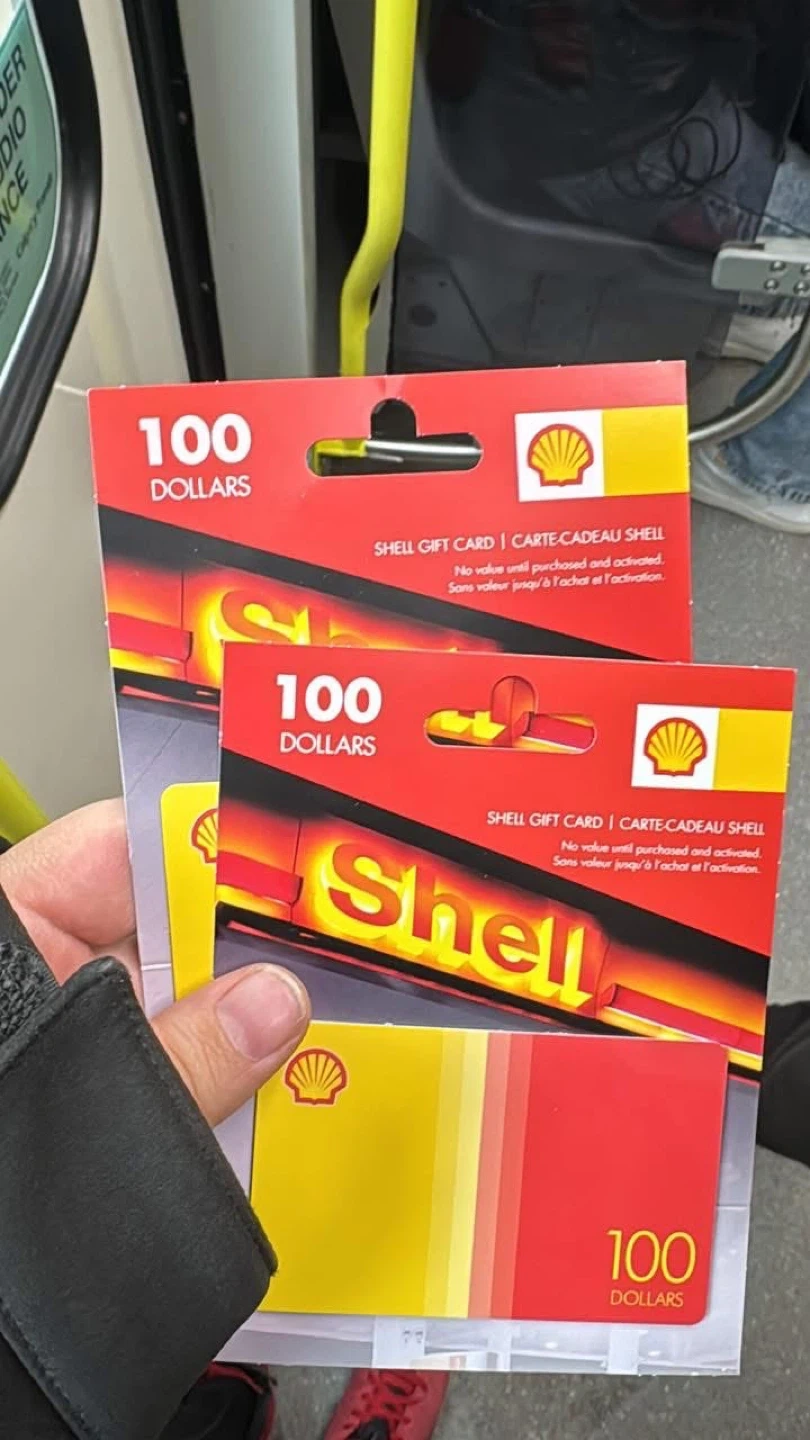 Two Shell gift cards, each valued at $100. They're ready for purchase and fully activated. These gift cards can be used for fuel or convenience store items at Shell stations.