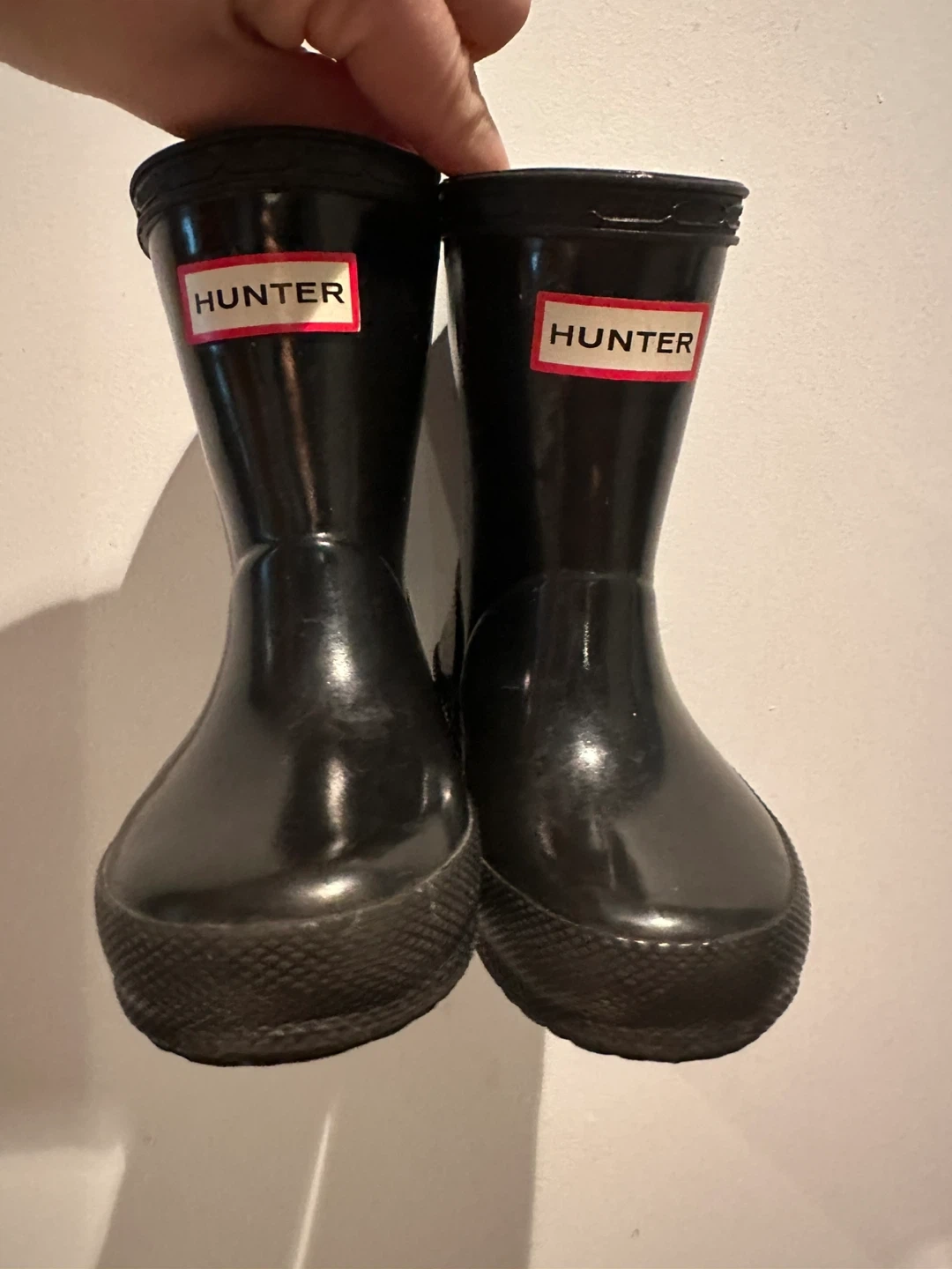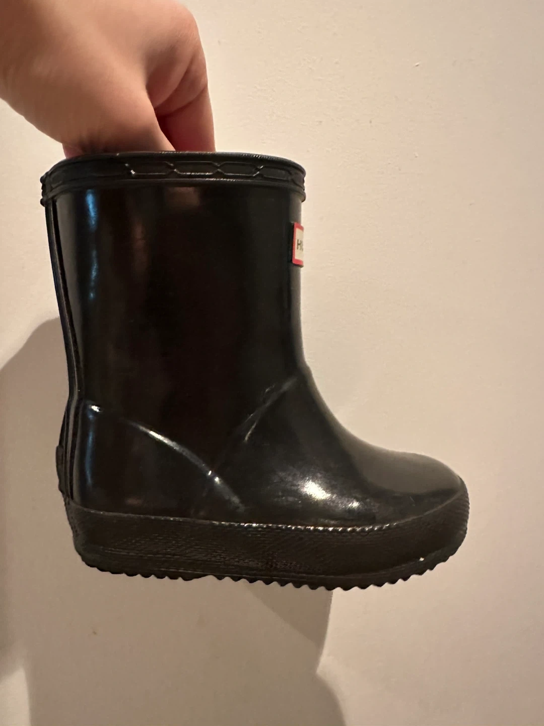 Hunter rain boots for toddlers. The soles are marked with a size 4 UK or size 5 (boys)/size 6 (girls). This fit my 18 month/2 year old. Practically brand new.