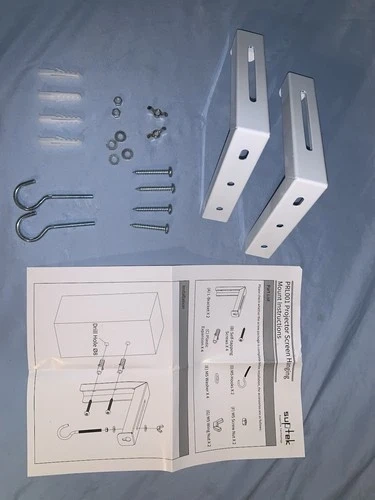 The Universal Projector Screen Ceiling Mount, Wall Hanging Mount L-Brackets by Suptek is a versatile and adjustable accessory designed for projectors. With a 6-inch size and white color, this mount is compatible with various projector screens and features a ceiling mount, wall mount, and hanging mount for flexible positioning. The included L-brackets make it easy to set up and the product is lightweight at 14.7 ounces, allowing for easy transport and storage. Perfect for enhancing your home entertainment or office presentation setups.