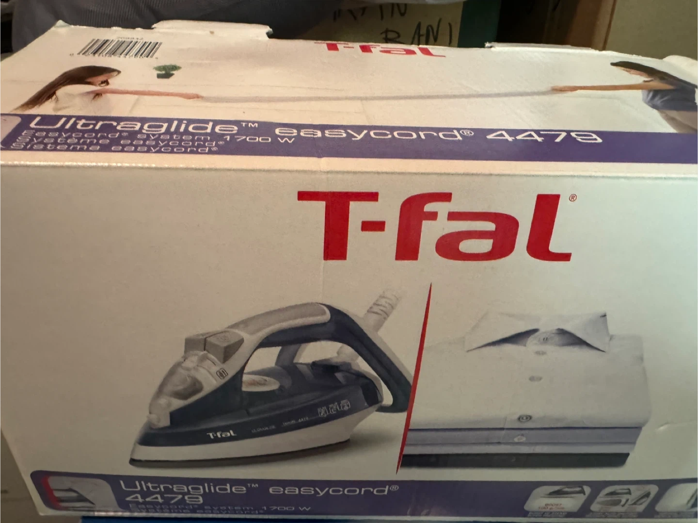 This T-fal Ultraglide iron is from the Easycord 4479 system. It has 1700 W of power. It's designed for easy cord management. This iron is great for tackling laundry piles!