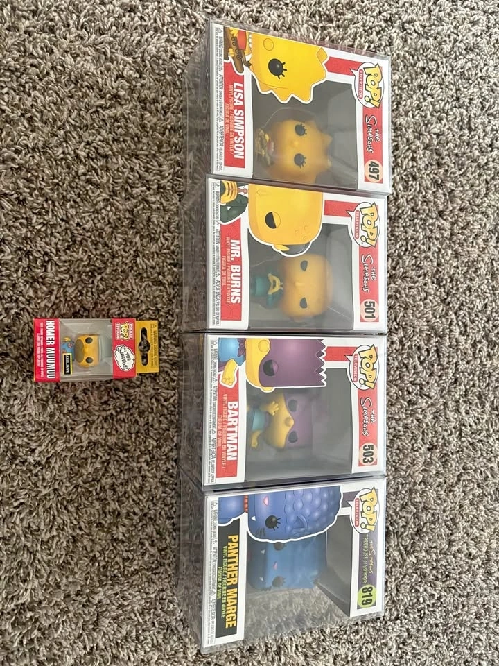Looking to sell all as a bundle: Lisa Simpson 497, Mr Burns 501, Bartman 503, Panther Marge 819, Homer Muumuu. Come from a smoke free, pet free home. All POPs have been stored in protective cases.