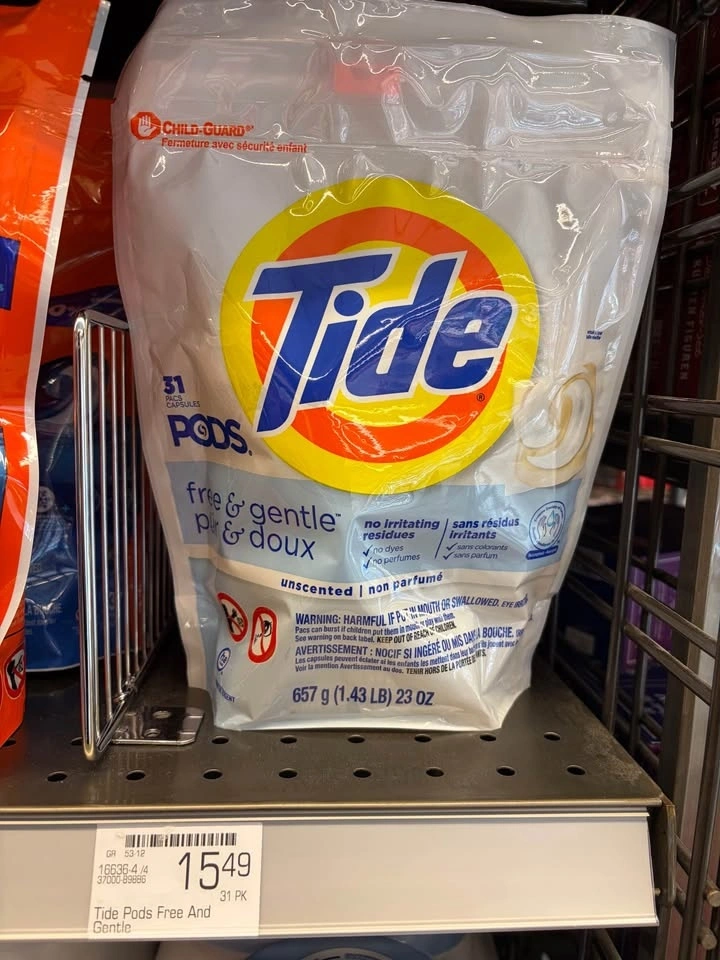 Moving sale! Selling my extra stock of original Tide Pods (Free & Gentle). This version is hypoallergenic and dye-free — perfect for sensitive skin. Condition: Brand new, unopened. Quantity: 2 packs available (38 pods each). Price: $13 per pack. My price is lower than retail + you get more capsules + you save on taxes.