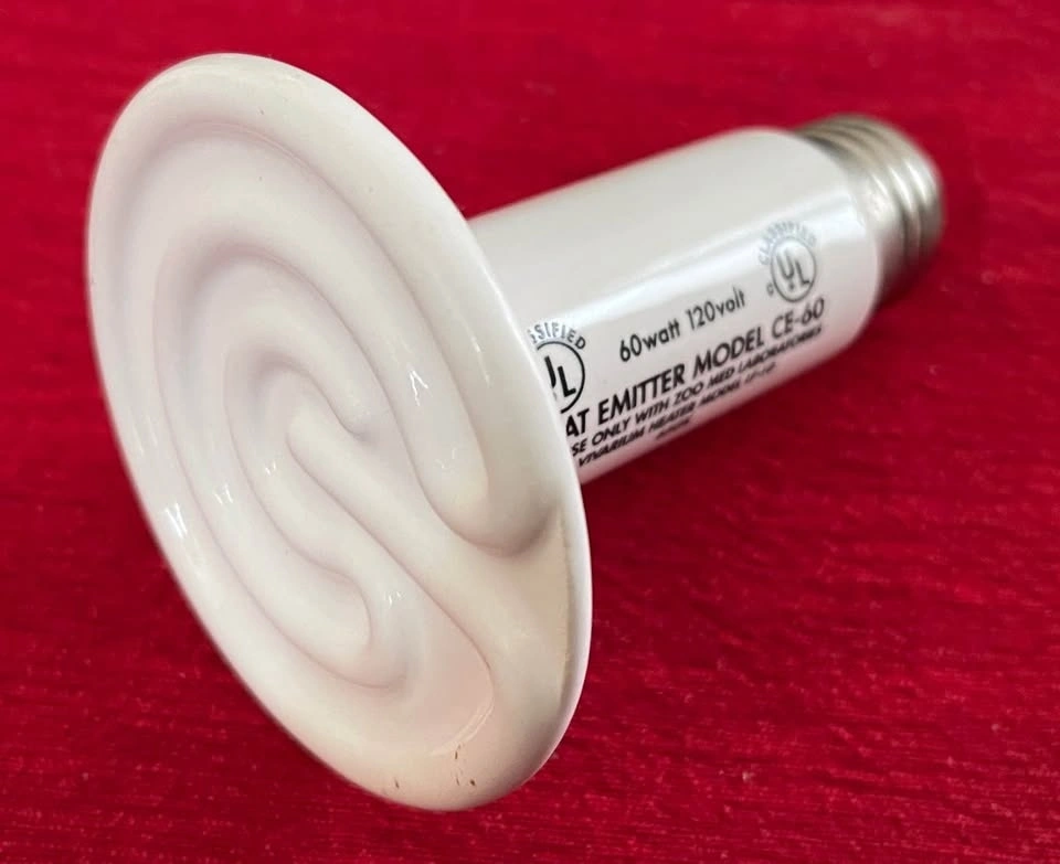 Zoo Med Laboratories Heat Emitter (60 watt) - like new. Herpcare Cricket Duster by Mardel, for dusting crickets with calcium. Like new. Price is for both items together.