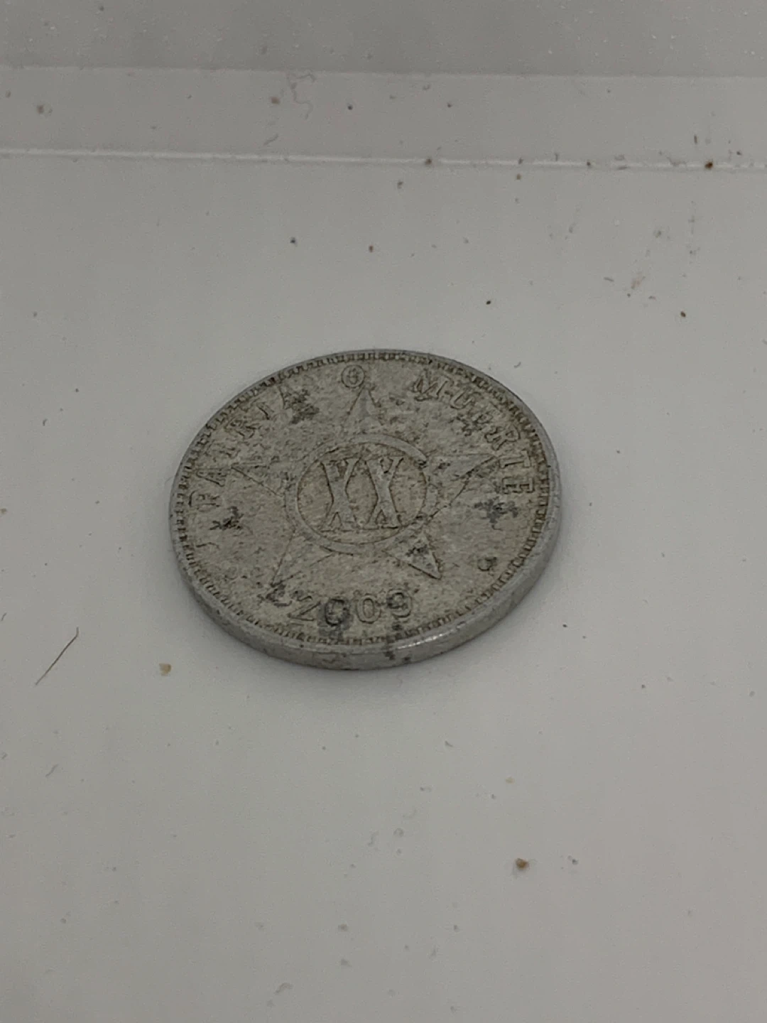 Selling a Cuban 5 Centavos coin from 2003. It features the Cuban coat of arms on one side and a star design with 'XXX' on the other. A unique piece of currency!