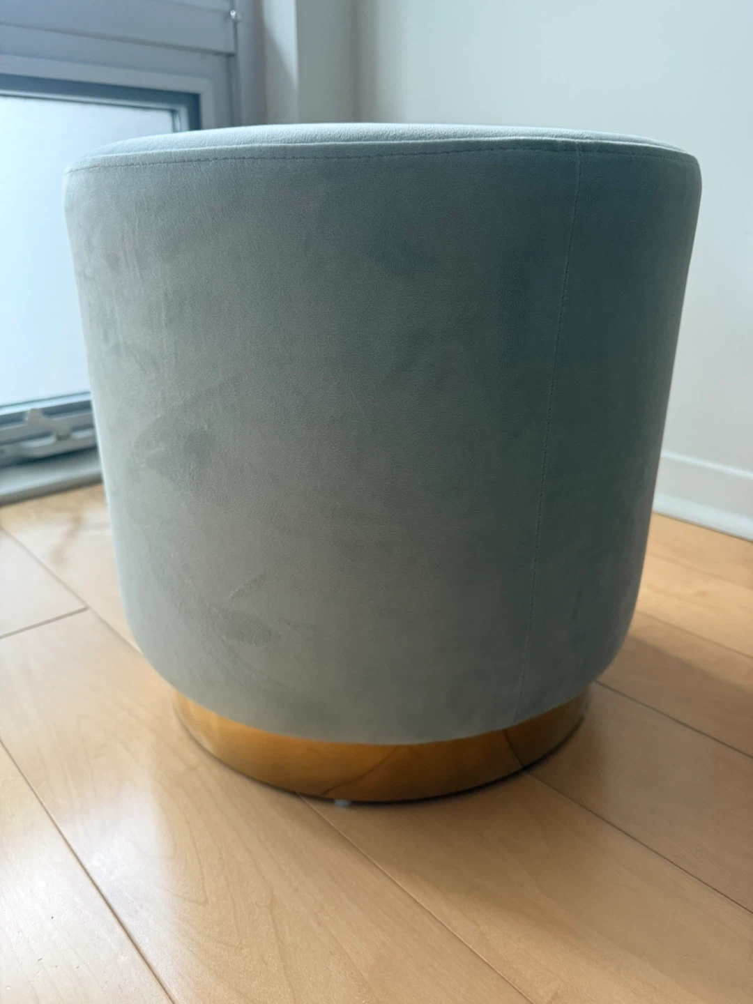 Selling a cute light green velvet ottoman stool! It’s in great condition and would look great in any room. It has a gold-tone base that adds a touch of elegance. Perfect as a footrest or extra seating
