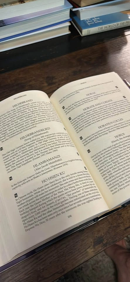This thick ex-library book is a really fascinating way to explore ancient epics and legends. It lists legendary places, characters, and items from around the world in an encyclopedic style.