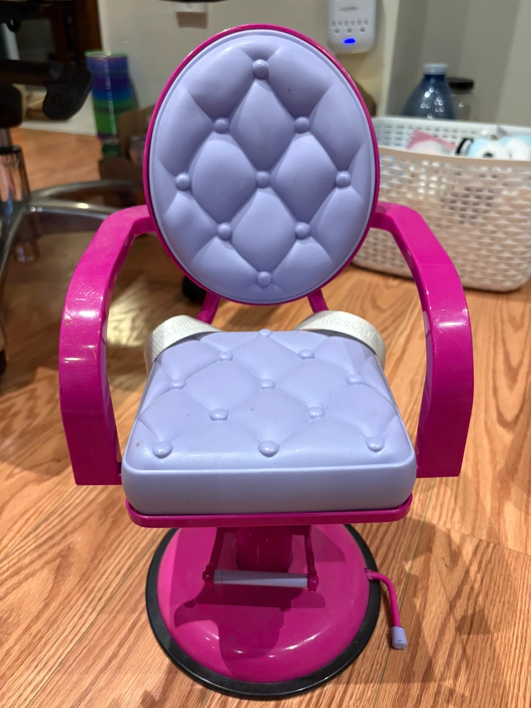 Selling an American Girl doll salon chair in great condition! It's a fun pink and purple colour. Perfect for your doll's styling sessions