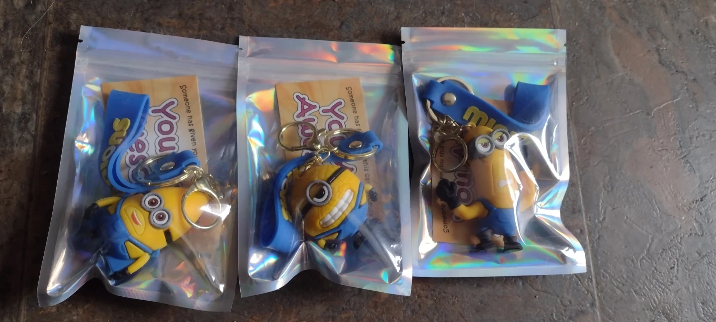 A collection of assorted keychains including Minions, sunflowers, animals, and various novelty items. These are great for personal use or as small gifts for friends. Many are individually packaged.Great for that Special Gift for Someone Special. Great to add to Party loop bags/ Gift Bag or Baskets.