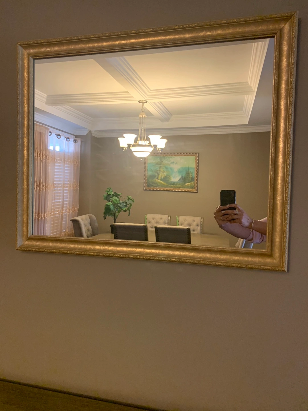 Buy & SellLarge Gold Framed MirrorLarge Gold Framed Mirror$45Large gold framed mirror. Great for a living room or bedroom. Comes with hanging hardware.ConditionLike newDimensions80x65 cmWHERE TO MEETCheck LocationView MapSELLERGigiBristol100 reviews0 chats·1 favorites·24 viewsSEND CHAT TO SELLERHi Gigi! I’m interested in your listing.Hi Gigi! I’m interested in your listing.Get the Karrot app to chatSign In to chat