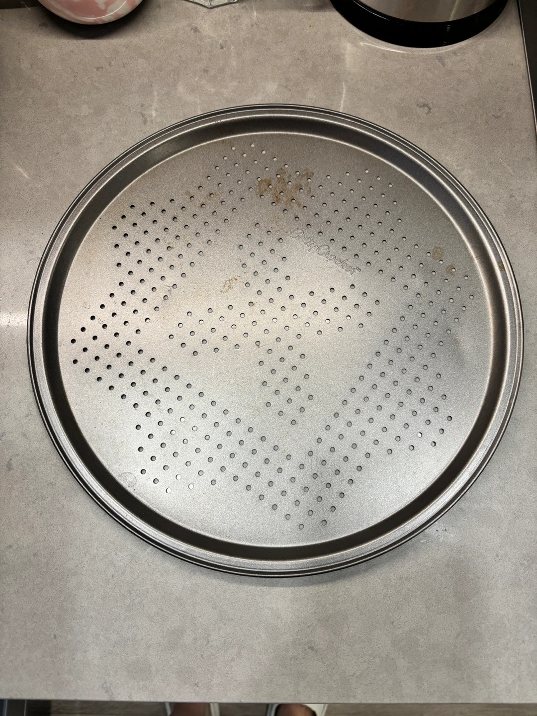 Selling a non-stick pizza pan from Betty Crocker. It's designed for even cooking and crisp crusts. Metal construction.