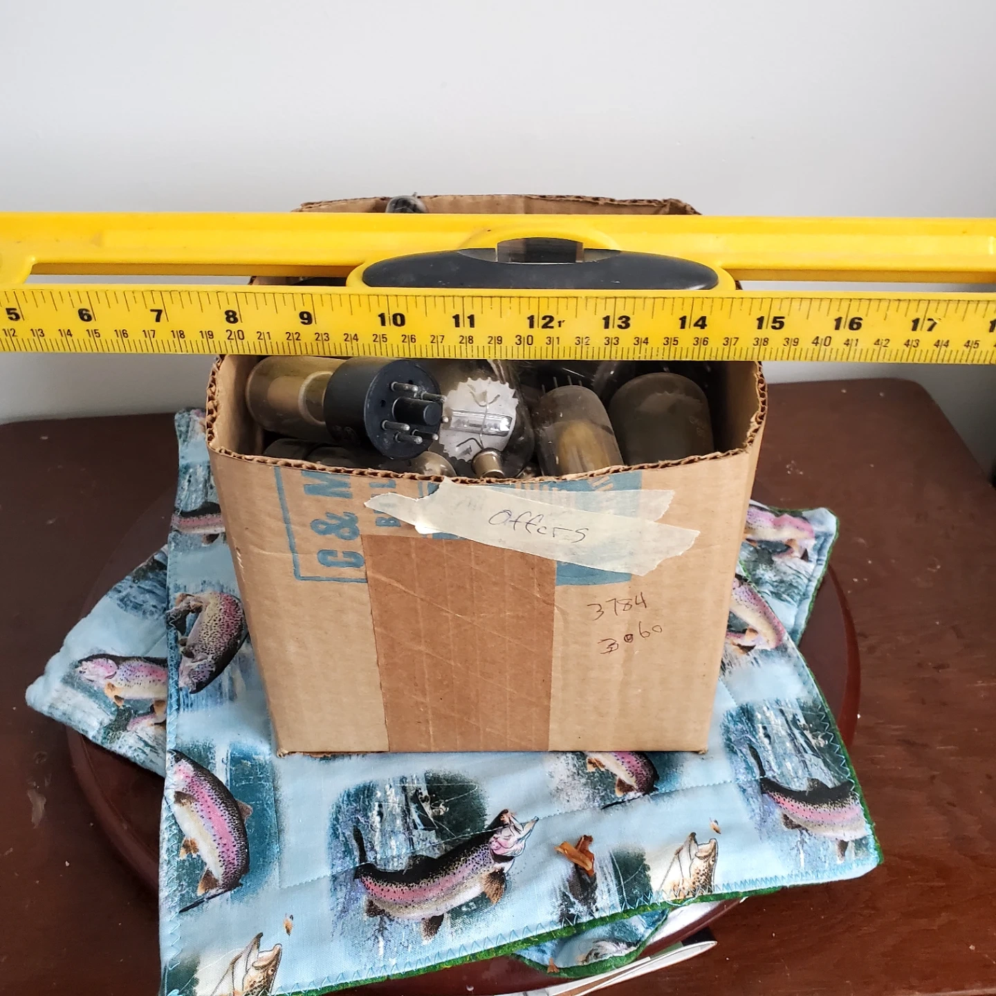 This is a box filled with various vacuum tubes. Many tubes are visible, and some have numbers or lettering on them. This lot is being sold as-is. There's approx 100 + tubes, all would have to be tested..(sold that) but non looked burnt. price is for all and open to offers...lets be nice.