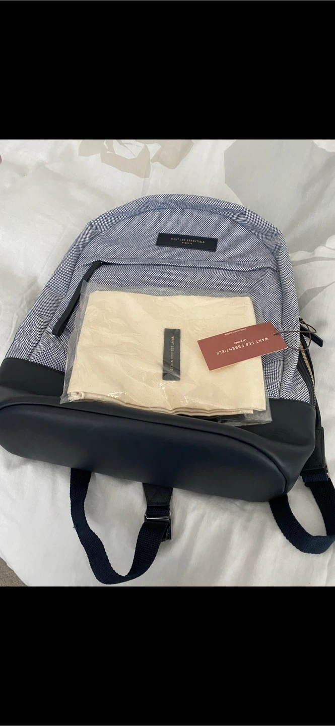 This brand new, never used WANT Les Essentiels backpack is in great condition! It features a stylish blue and navy design. Comes with a padlock and key for added security. Perfect for everyday use or travel