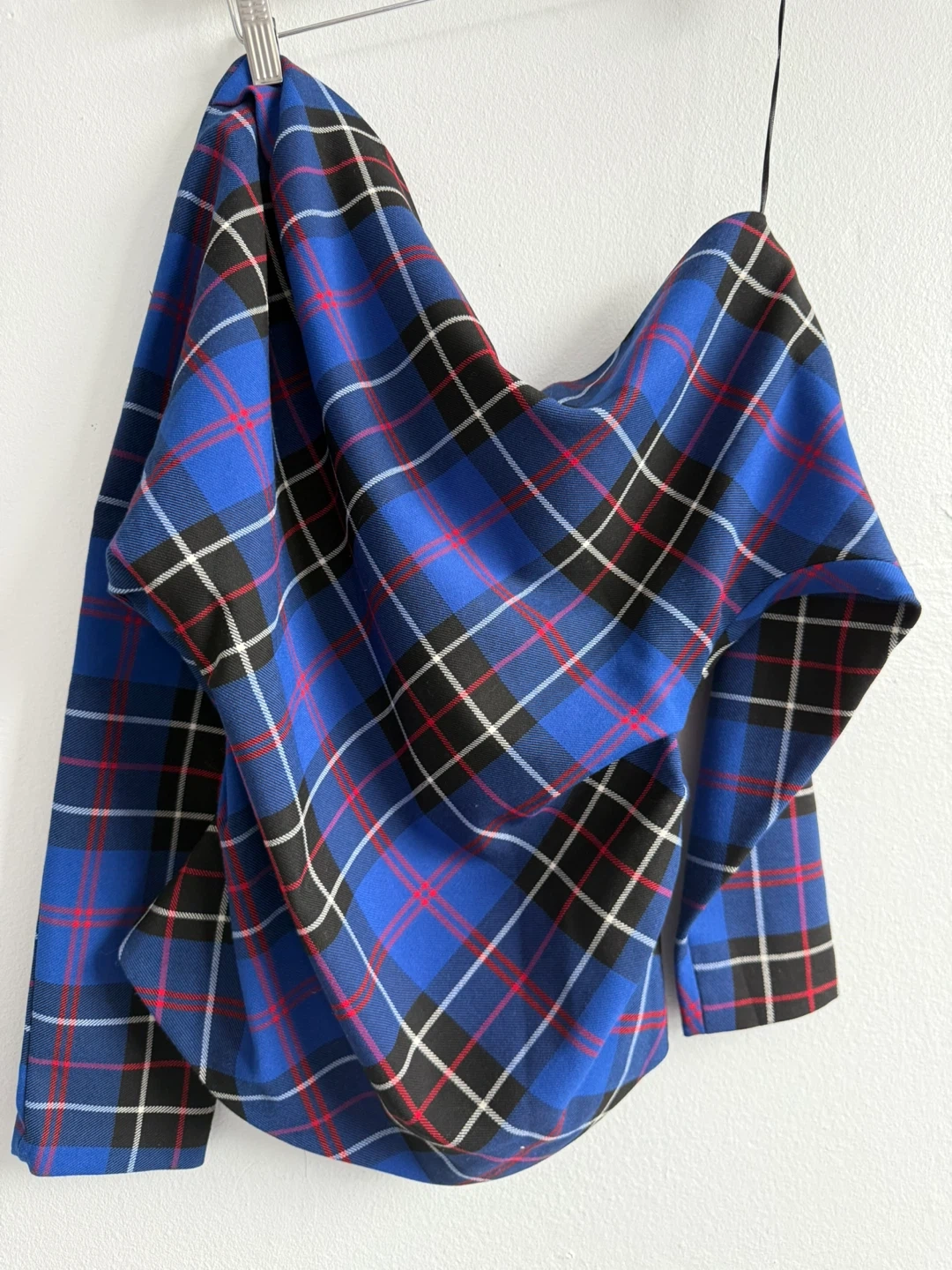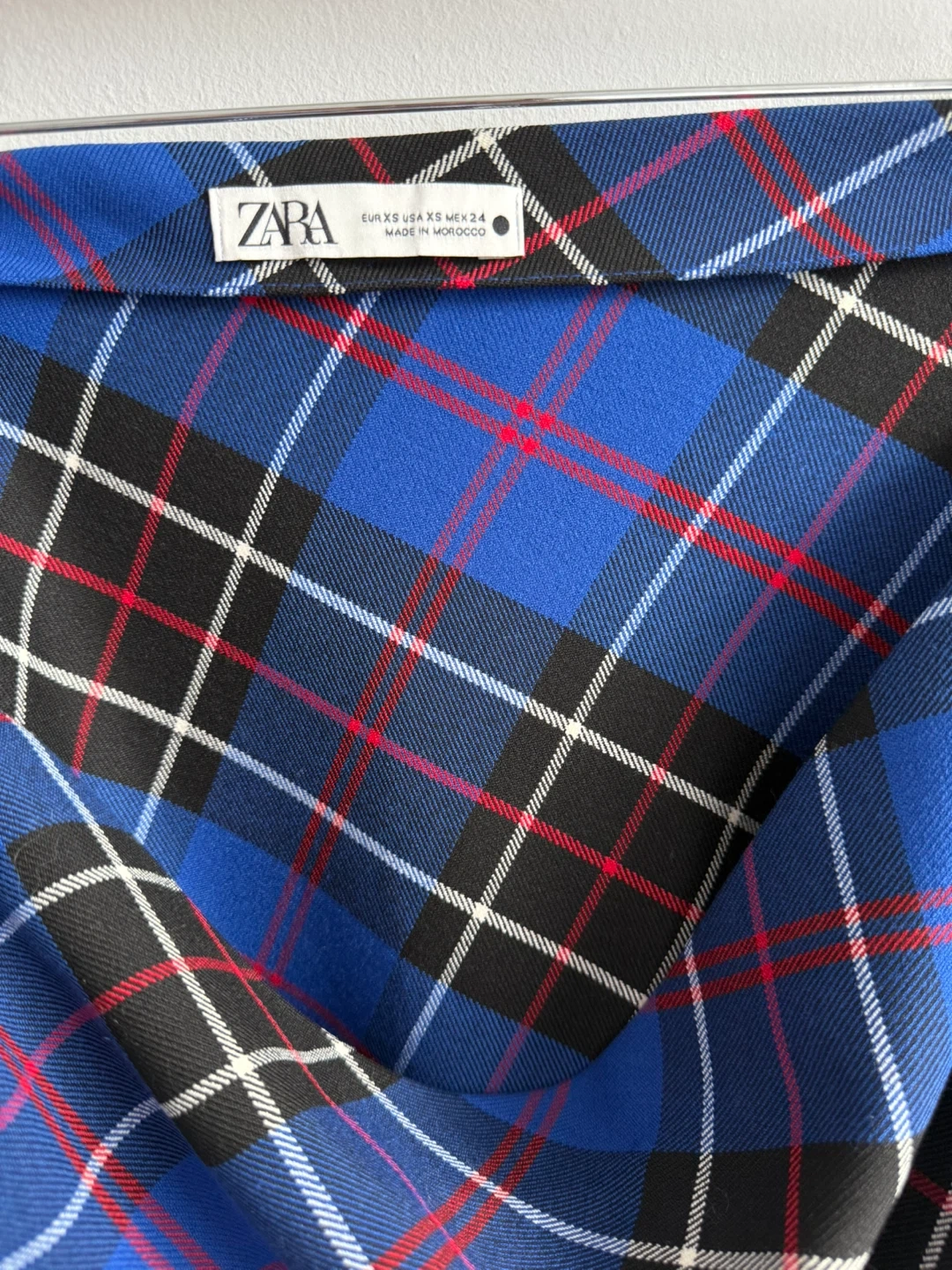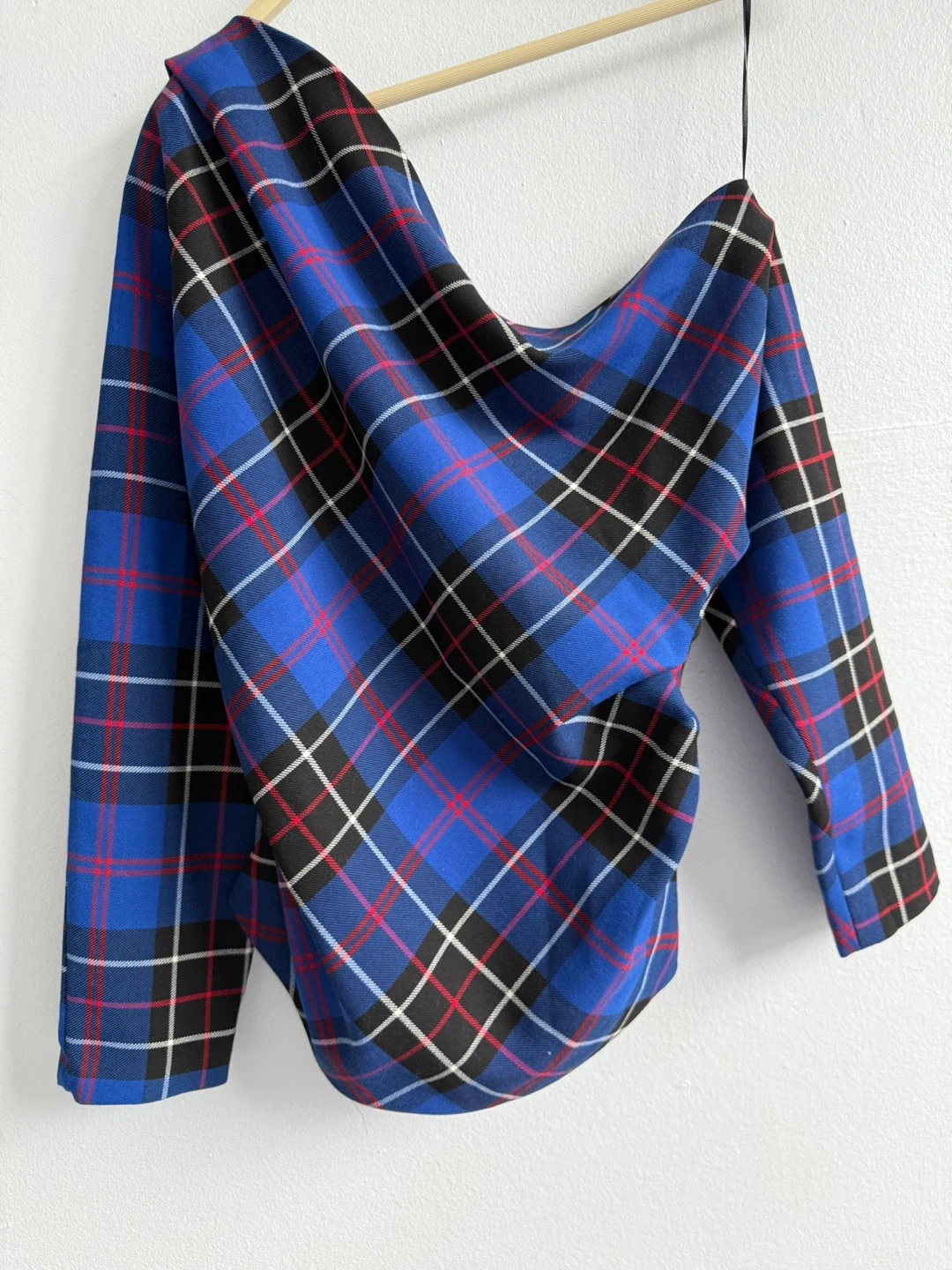Selling a cute Zara one shoulder blouse in a blue plaid pattern! It's a size XS and in great condition. Perfect for adding a pop of colour to your wardrobe