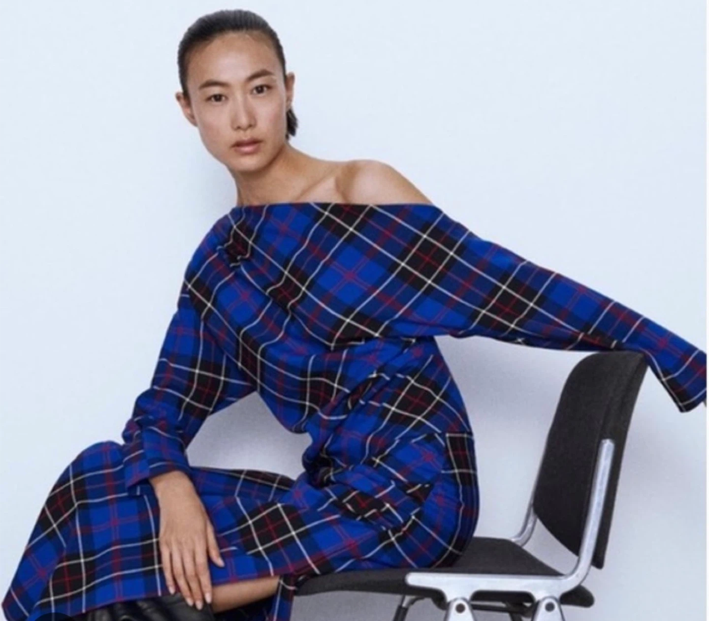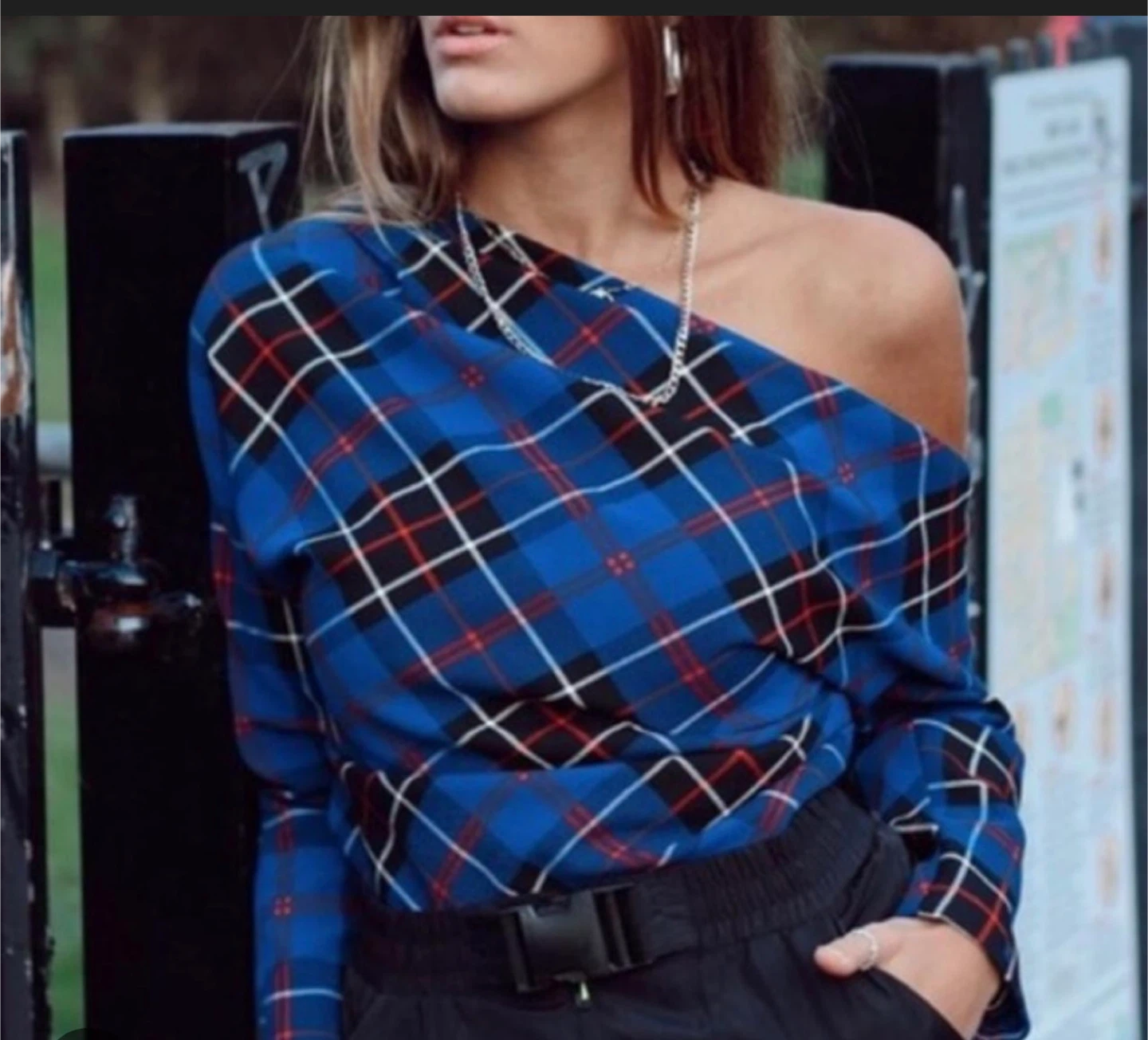 Selling a cute Zara one shoulder blouse in a blue plaid pattern! It's a size XS and in great condition. Perfect for adding a pop of colour to your wardrobe