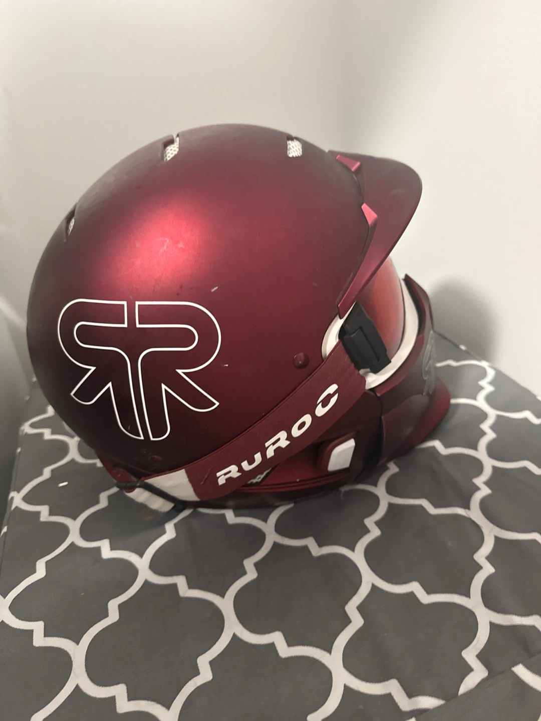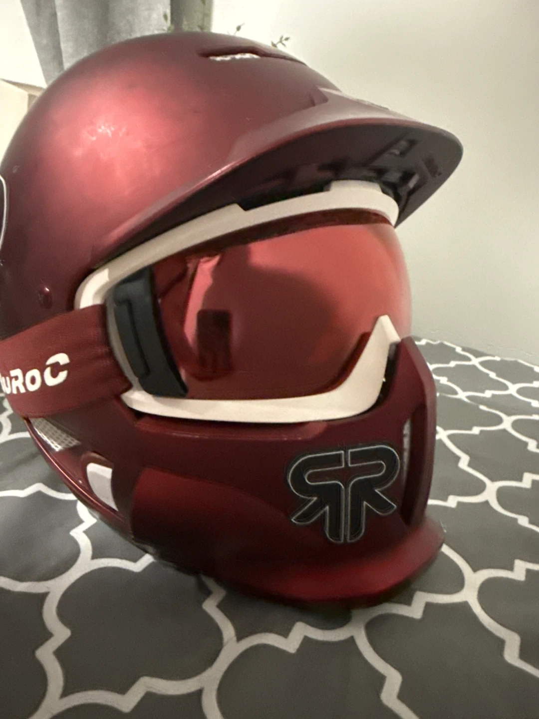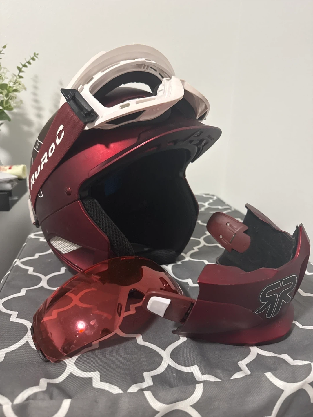 This is a Winter Edition Ruroc helmet in a metallic red colour. It comes with a visor and goggles. The modular chin bar is also included. This helmet is great for snow sports