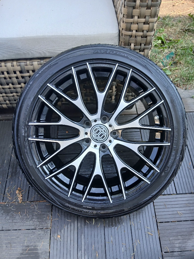 This is a 18 inch wheel with a 5x114.3 bolt pattern. It has a black and silver finish and comes with a tires. open to offers and willing to trade for equal value