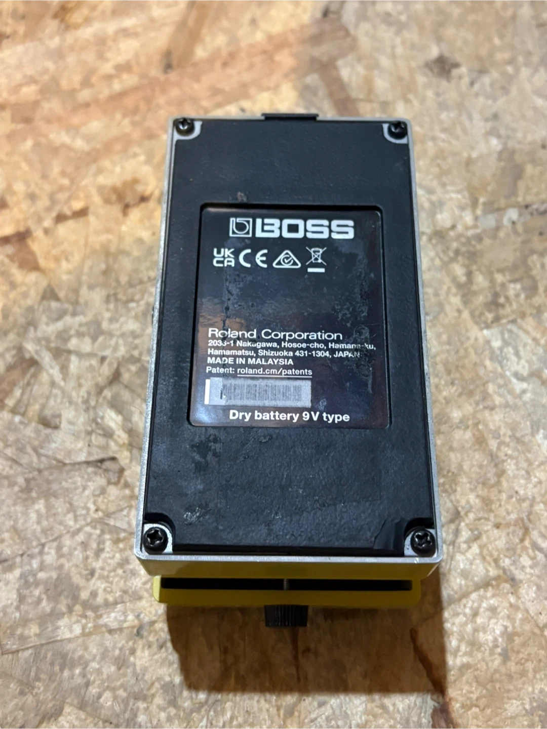 This is a BOSS SD-1 Super Over Drive guitar effect pedal. It's yellow and has controls for Level, Tone, and Drive. Requires a 9V battery type.