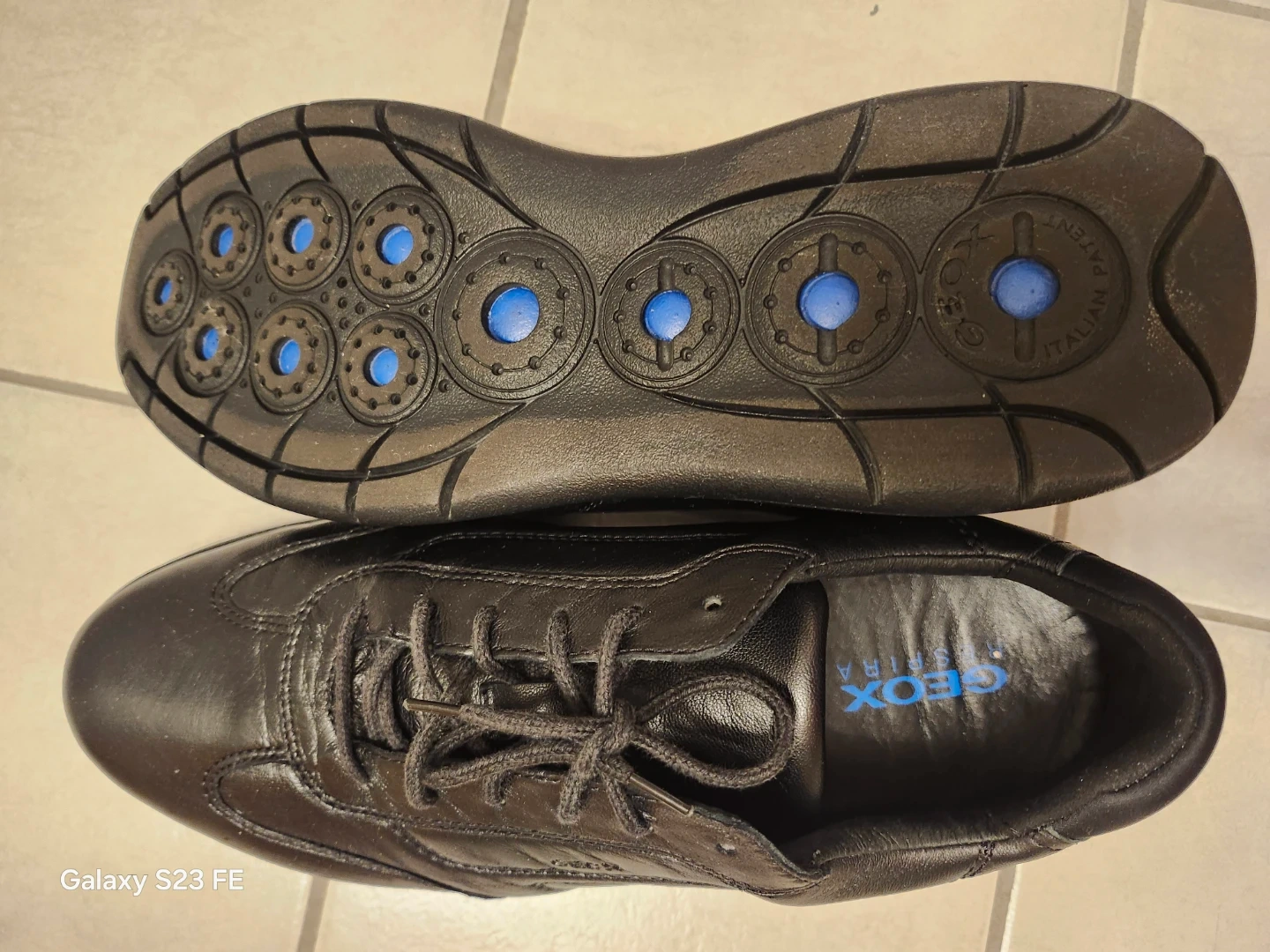 Geox black leather men's shoes. These stylish shoes are made with breathable leather. They're comfortable for everyday wear. Size# US 8, EUR 41, very light.
