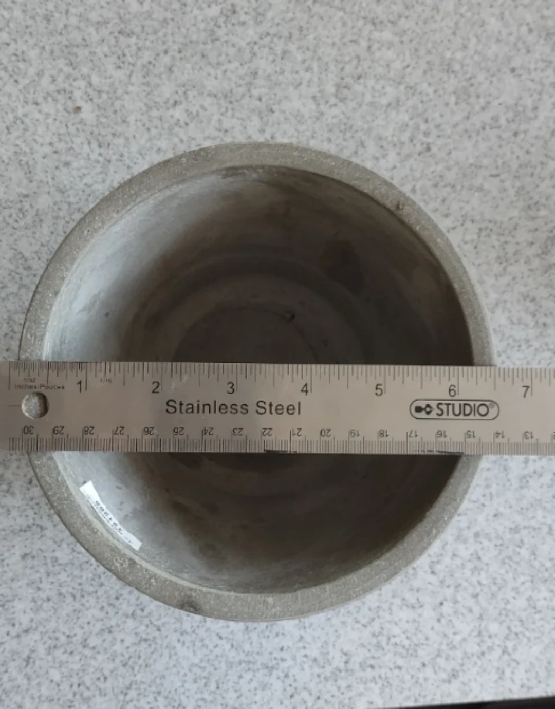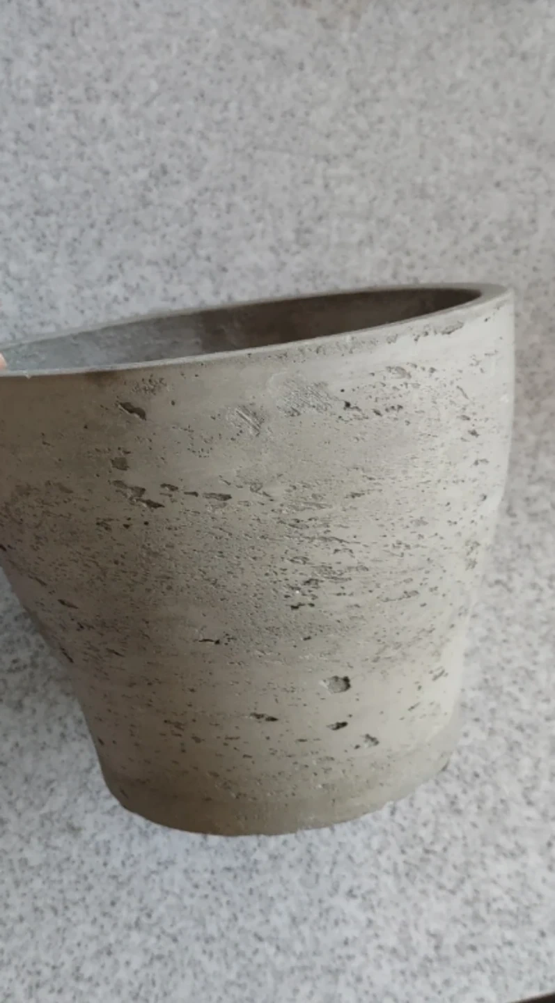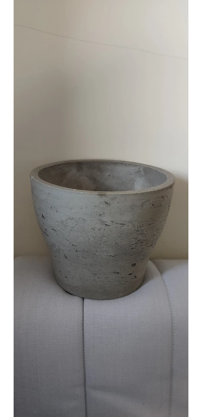 This is a concrete planter pot from Jardin de Ville. It's 16.5cm in diameter and 14.5cm high. This pot is suitable for indoor or outdoor plants.