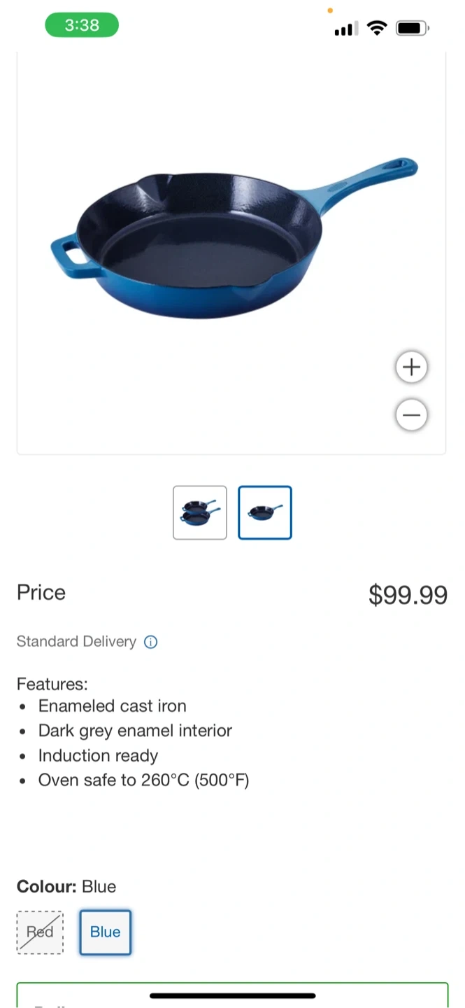 Selling a Henckels Enamelled Cast Iron Skillets Frypan 1 piece, in blue. It's in great shape and ready for your kitchen! The set features enamelled cast iron with a dark grey enamel interior. It's also induction ready and oven safe up to 260°C (500°F). Originally bought for $99.99 pan is too Heavy for me. Pick up only.