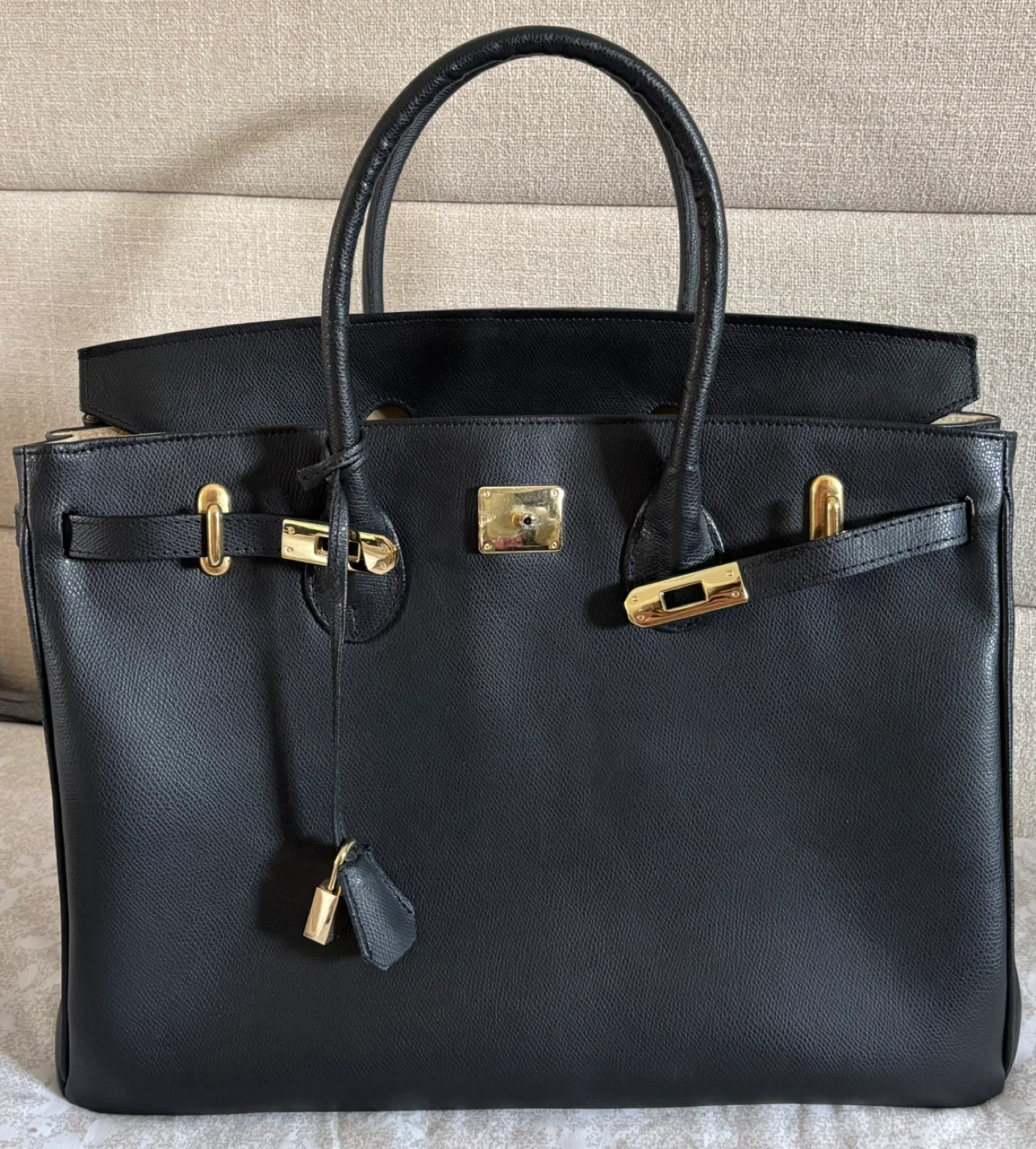 Black Leather Handbag with Gold Hardware