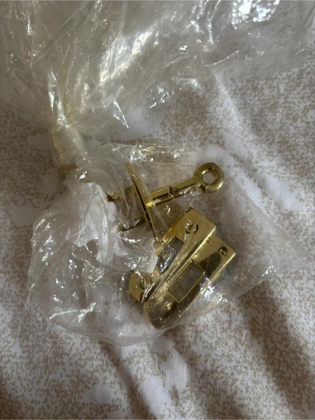 The front turn-lock hardware needs to be reattached or replaced. The original matching gold-tone hardware set is included, as shown in photos.