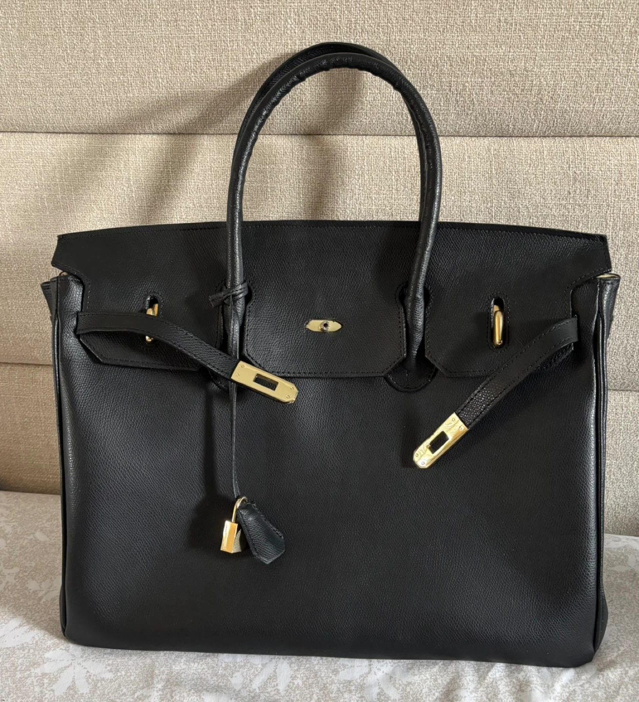 Black Leather Handbag with Gold Hardware