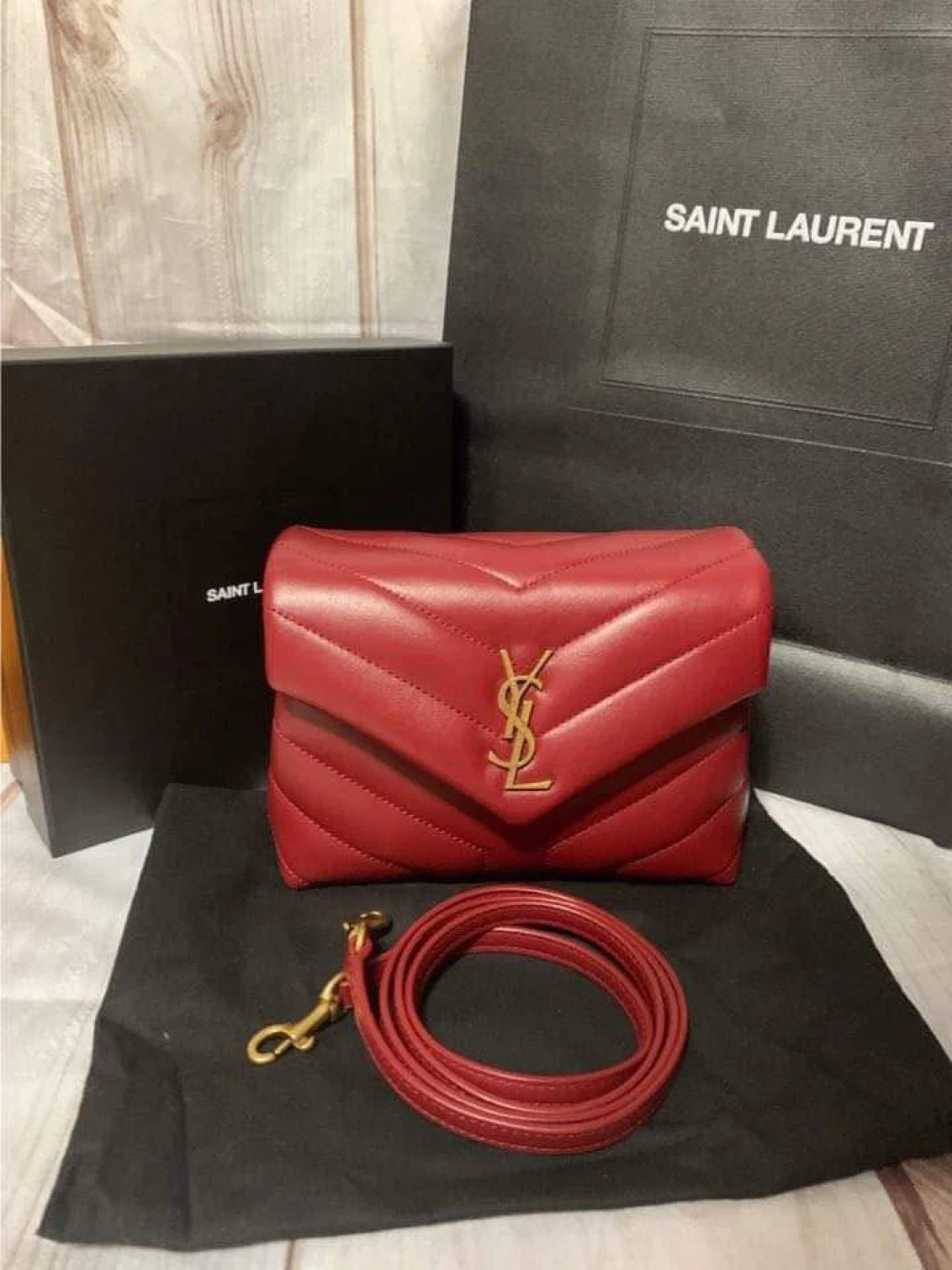 Saint Laurent Red Chevron Leather Small Lou Camera Bag