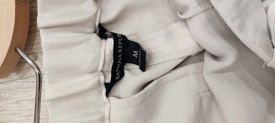 Comfy Banana Republic pants. Size M. Light gray color. Elastic waist with drawstring. Has a back pocket. Super soft fabric. Great for casual or dressy looks.