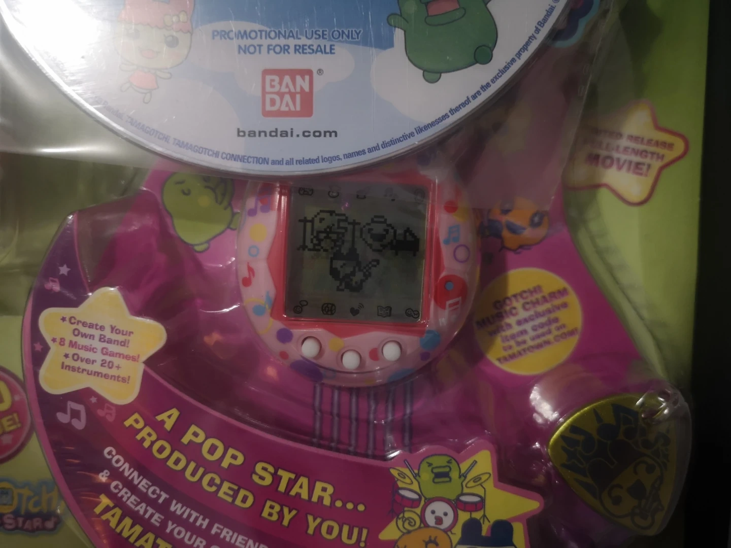 Pink Tamagotchi music star V6 in original sealed packaging, promotional bundle item , offering over 20 instruments and 8 music games. Connect with friends online and create your own music at Tamatown.com. Recommended for ages 8+.