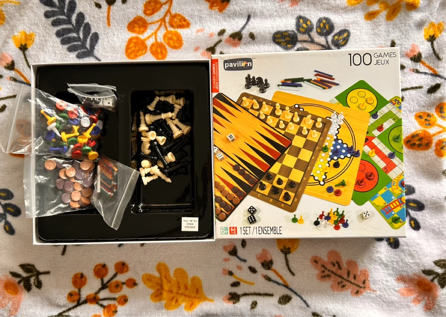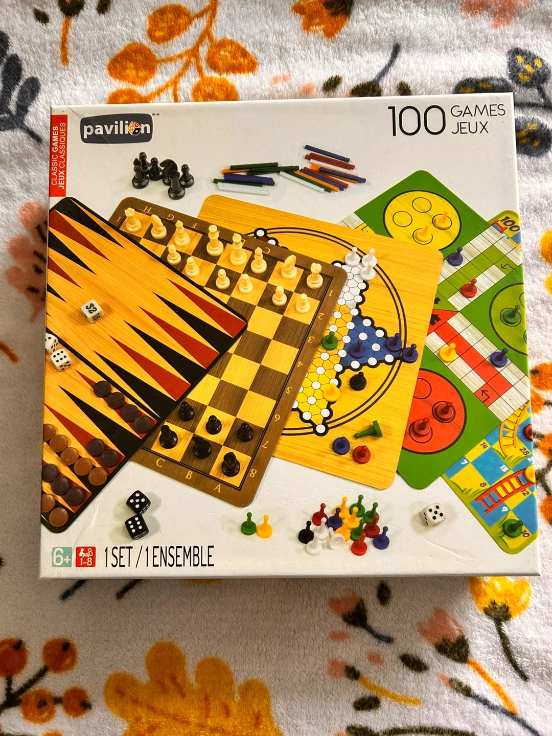 This set includes 100 classic games for family fun. Boards and pieces for chess, checkers, backgammon, and more are included. Perfect for game nights and rainy days!
